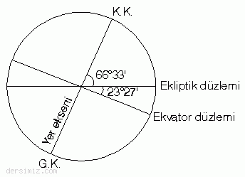 Dünya'nın elips şeklindeki yörüngesinden geçen düzleme Ekliptik (yörünge) düzlemi, Ekvator'dan geçen düzleme ise Ekvator düzlemi denir.